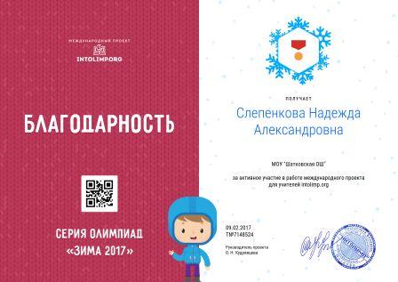 Благодарность за активное участие международного проекта для учителей. |