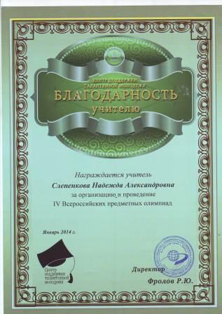 Благодарность центра поддержки талантливой молодежи за организацию и проведение IV Всероссийских предметных олимпиад |